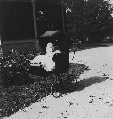 BBinYard.jpg baby in buggy presumed to be Edna