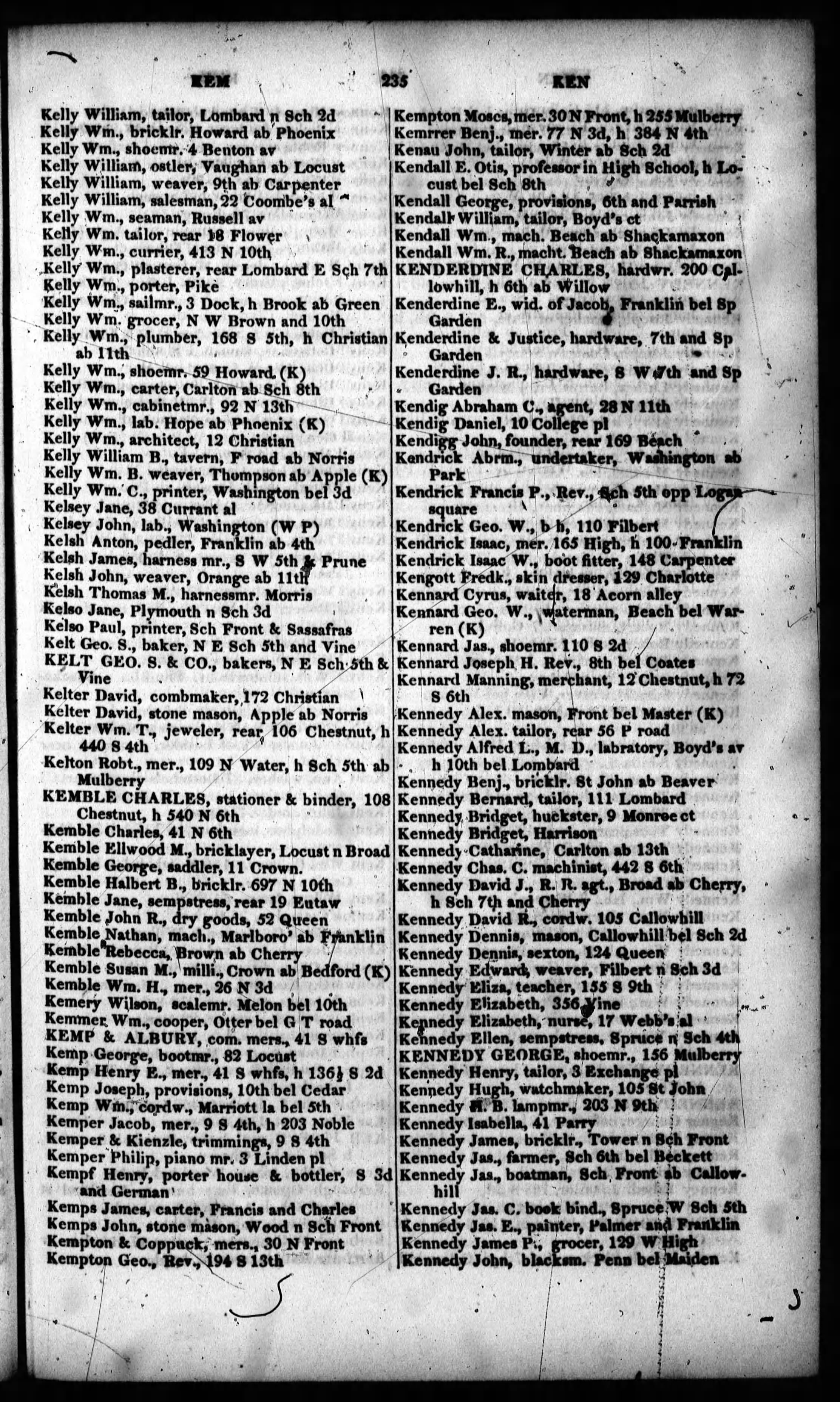 City Directories of Philadelphia, for various years, show James and the family at the following addresses with these occupations: