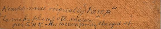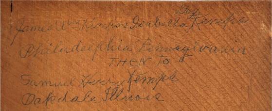 The back of an old picture, owned by James Kemps, provides the following important information:
