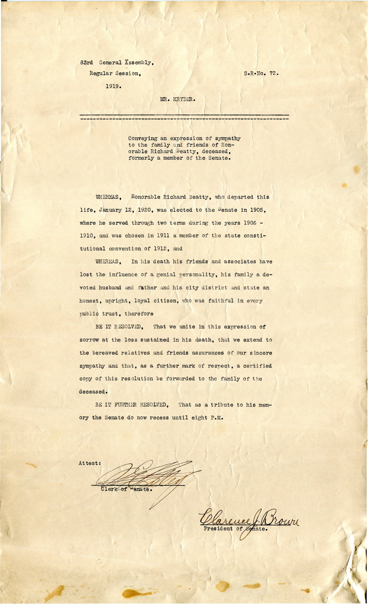 Senator Beatty Ohjo Senate Resolution 1920.jpg